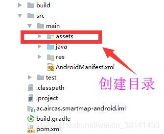 第3步,在main目录下创建assets文件夹,用于存放需要打包的资源文件,比如图片等;并将其放入assets文件夹中。当然,如果没有需要打包的资源文件,则直接跳过此步骤。