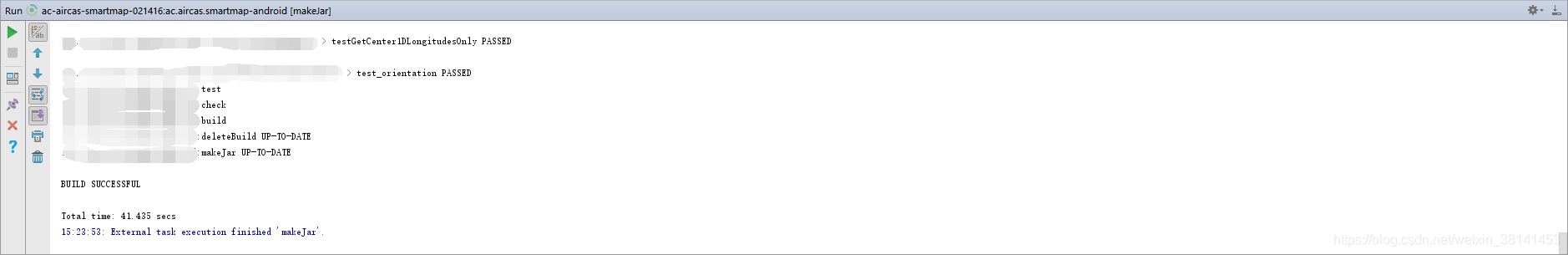 def SDK_BASENAME = "TestSdk"; def SDK_VERSION = "_V1.0"; def sdkDestinationPath = "build"; def zipFile = file('build/intermediates/bundles/release/classes.jar') task deleteBuild(type: Delete) { delete sdkDestinationPath + SDK_BASENAME + SDK_VERSION + ".jar" } task makeJar(type: Jar) { from zipTree(zipFile) from fileTree(dir: 'src/main',includes: ['assets/**'])//将assets目录打入jar包 baseName = SDK_BASENAME + SDK_VERSION destinationDir = file(sdkDestinationPath) } makeJar.dependsOn(deleteBuild, build) 注意jar包的生成目录。